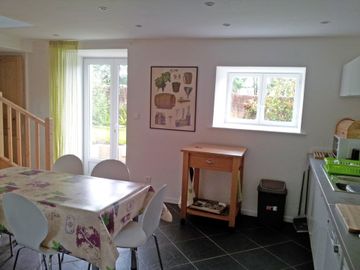 Sleeping up to six, the the property is set in its own grounds, accessed via a secluded driveway. Guests have their own private gardens leading down to a small stream, a west facing BBQ patio with chairs and sunshades as well as communal lawns with table tennis and a wildlife pond. An adjoining barn houses a games room with a small snooker table, darts and other games as well as adult and children's bikes to borrow.The house has high-speed Wifi throughout.