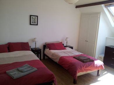 On the first floor, there are two bedrooms, one double and one triple and a family bathroom with a shower-bath and WC.